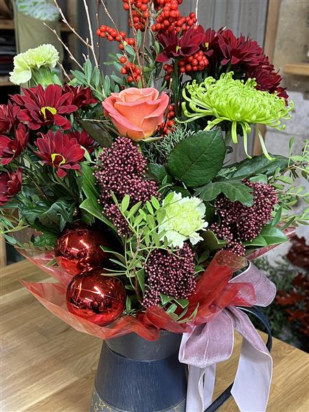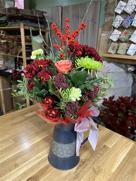 Lovely Festive Handtied in a jug. Ideal for instant display