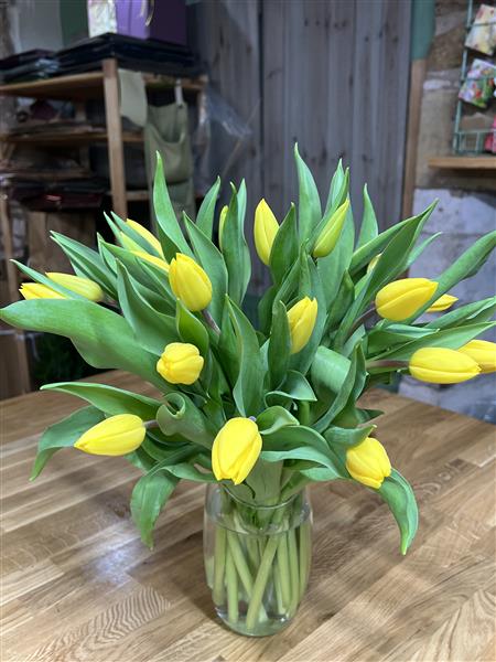 20 Yellow Tulips arranged in a vase. Just a nice Spring gift!
