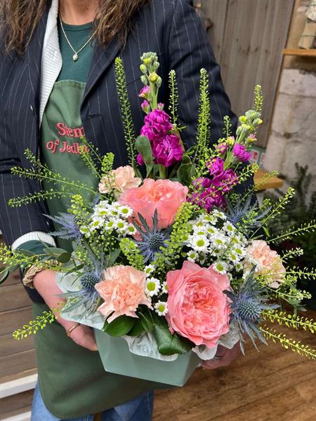 Introducing a brand new variety of rose called Mayfield. These roses are absolutely gorgeous and blend beautifully with stocks, thistle and thlapsi.